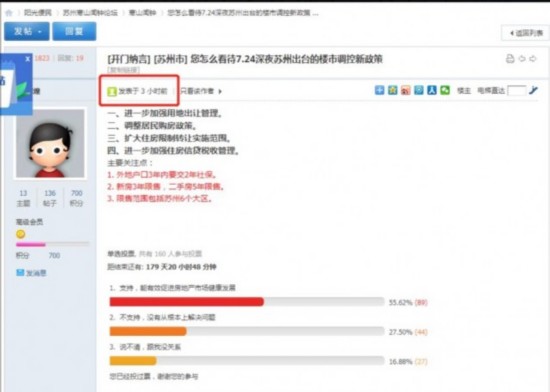上午十点左右,看苏州记者注意到寒山闻钟网站上刊发了一条帖子“您怎么看待7.24深夜苏州出台的楼市调控新政策”。