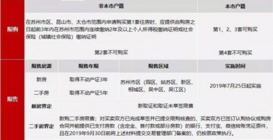 非苏州户籍人士购房需三年内连续缴纳两年社保,新房三年限售,二手房五年限售,限售范围囊括苏州六个区,于7月25日正式实施!