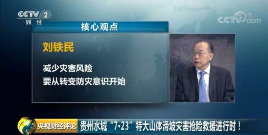 7月25日晚,《央视财经评论》节目,邀请中国应急管理学会副会长刘铁民 和成都理工大学副校长、 地质灾害防治国家重点实验室常务副主任许强、 以及央广财经评论员王冠 共同解析。