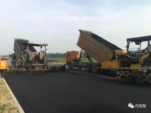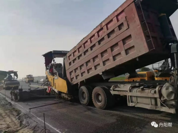 为了保质保量完成进度,施工方安排了两台沥青摊铺机同时作业。虽然只是早晨六点多,但是当我们靠近施工现场的时候,可以很明显的感受到,沥青散发出的高温,让人感觉吃不消。据工地负责人介绍,沥青摊铺现场环境温度至少在50度左右。不过,现场所有的工人都不顾高温的炙烤,依然坚守在各自的岗位上。