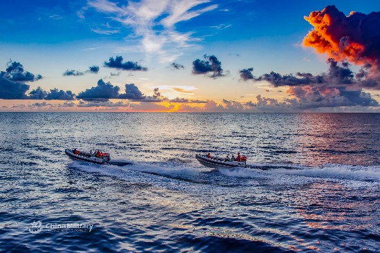 “武汉”号发射干扰弹,干扰“来袭导弹”。