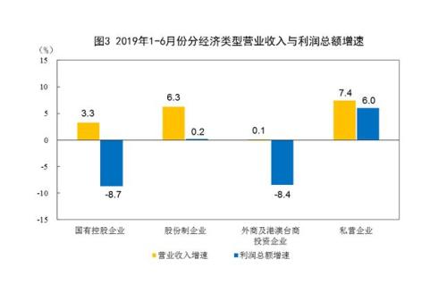 1-6月份,规模以上工业企业中,国有控股企业实现利润总额9368.8亿元,同比下降8.7%;股份制企业实现利润总额21390.6亿元,增长0.2%;外商及港澳台商投资企业实现利润总额7186.2亿元,下降8.4%;私营企业实现利润总额7430.7亿元,增长6.0%。