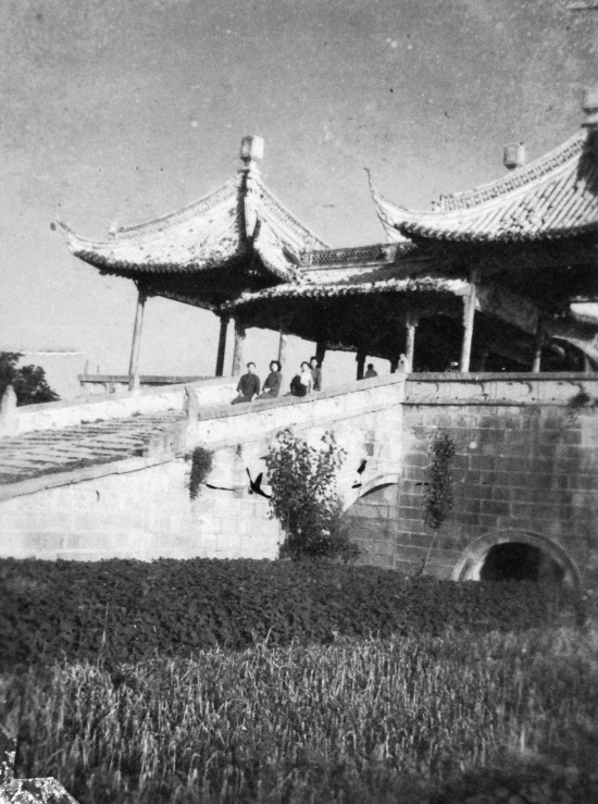 第一张照片是三位穿着旧时旗袍的中年女子在小金山风亭前的合影。“中间的女子是我奶奶,旁边两位是奶奶的好友。”希韵介绍。第二张照片拍摄地在五亭桥上,除了奶奶和两位好友,还有一个10多岁的小男孩。“他就是我的父亲。”