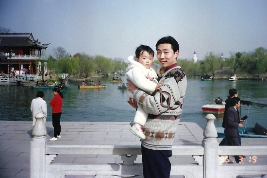 在希韵提供的上世纪80年代后期照片中,从1984年他个人在瘦西湖的单人照,到1995年抱着儿子在瘦西湖熙春台的留影,“穿西装,烫头发,戴墨镜,穿羊毛衫,生活水平在不断提高。”