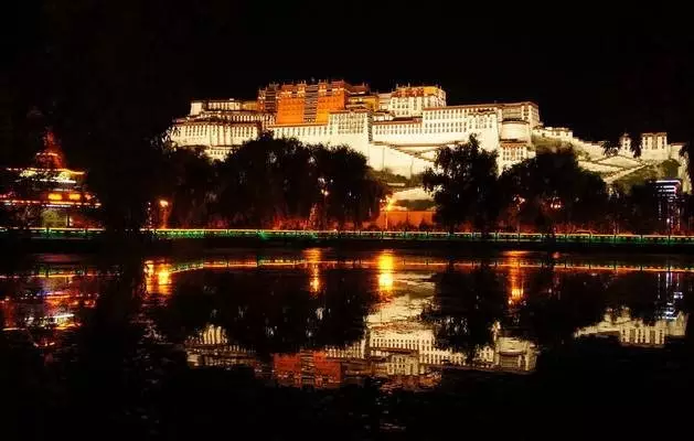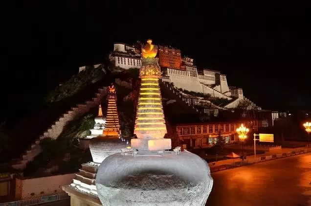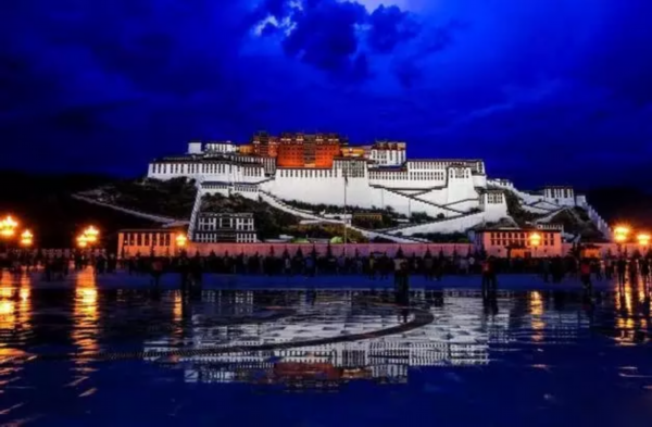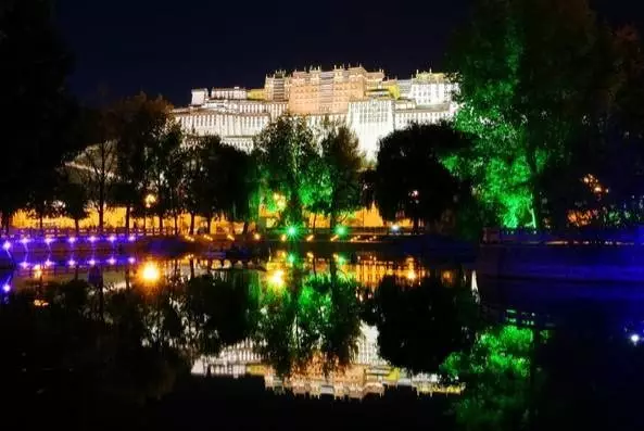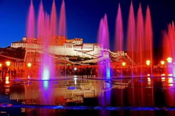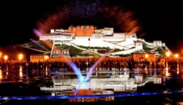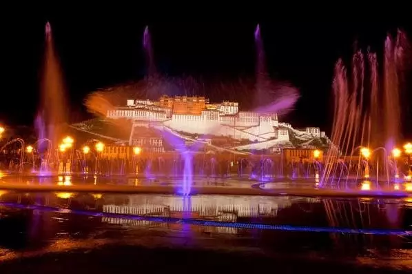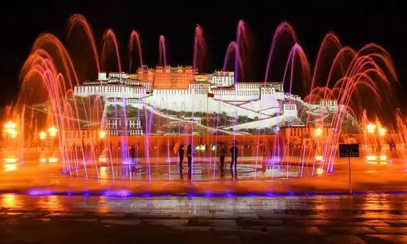如今,夜色中的布达拉宫也是一道美景,灯光亮起,喷泉升起,音乐响起,驻足布达拉宫广场,享受着这一片迷离美景,舒畅!!