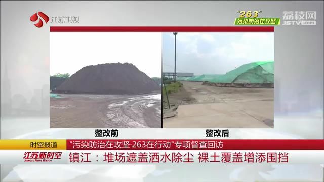 节目中还曝光了镇江高新区惠龙港码头和京口区新民洲港务公司项目工地的扬尘污染问题,目前惠龙港已将所有堆场覆盖,积尘全面清扫,厂区每天定时进行洒水除尘。新民洲港务公司现已被勒令停工,场地围挡和裸土覆盖已经完成,京口区各部门还组成现场检查、责任督察和事件调查三个工作组,进驻厂区全面落实长效整改。