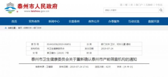 产前筛查纳入产前诊断质量控制体系,所有本次确认的产前筛查机构所选用的筛查方法、筛查指标(包括所用的试剂)和管理软件必须是由泰州市产前诊断中心(泰州市人民医院)认定并统一管理。