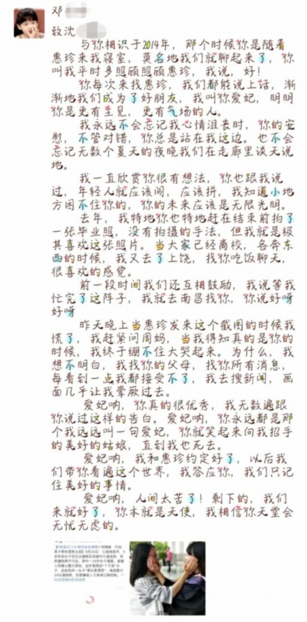 她走的那天我7点多就去上班了,她9点左右的火车,我8点半发微信给她,说女儿要早点去车站,在路上多一点时间才不会紧张。她一个人带着行李打车去的车站,谁想到后来会出这个事?