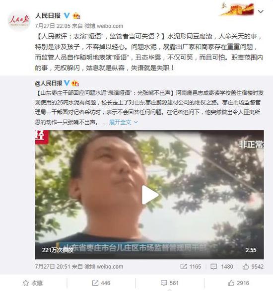 水泥形同豆腐渣,人命关天的事,特别是涉及孩子,不容掉以轻心。问题水泥,暴露出厂家和商家存在重重问题,而监管人员自作聪明地表演“哑语”,丑态毕露,不仅可笑,而且可怕。职责范围内的事,无权躲闪,姑息就是纵容,失语就是失职!
