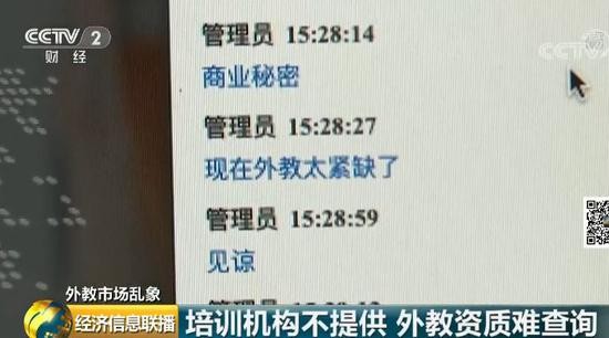 当记者在一家培训机构的官方网站上询问能否查验外教资质时,得到的回复则是:“现在外教太紧缺了”,外教身份属于“商业机密”。还有的培训机构甚至不知道什么是外国人工作许可证。