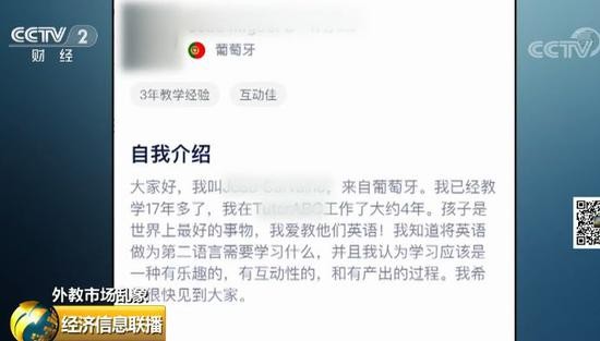 在某款在线英语培训手机APP上,客服人员也一直强调,他们的外教全部来自于英国、美国、澳大利亚和加拿大等英语母语国家,但在“推荐老师”版块中,记者却发现,有两位葡萄牙籍的教师。