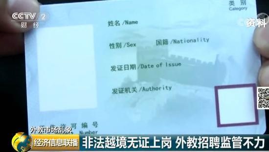 国家外国专家局工作人员:正面是许可证的发证机关,反面可以看到这个外教的照片、姓名,还有一个二维码。