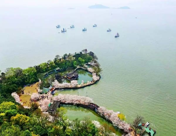 无锡人小时候春游一定会去位于湖中央的三山岛。以前岛上有猴子,并建有仙岛牌坊、会仙桥、月老洞、天都仙府、天街、太乙天坛、灵宵宫、大觉湾和仙佛洞等景点,天街上还售卖各种点心。