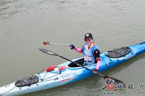 单人单桨的杨晓莉是苏州市皮划艇桨板协会会员,从相门城墙出发到人民桥,已经捡了一大袋垃圾,其中很多都是塑料瓶、塑料袋等。她说,希望通过身体力行的参与,让更多人自觉参与保护苏州河道清洁,让苏州水更清、天更蓝。