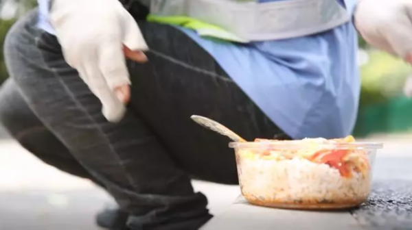 每天吃午饭对她来说是一场“持久战”,因为吃饭也是在岗位上,而道路就是她的工作岗位。