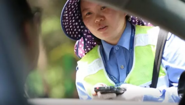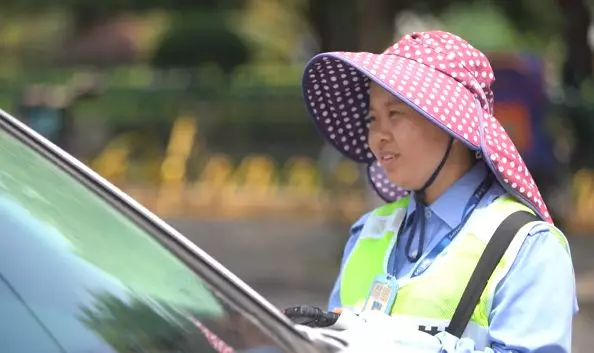“门窗关好,贵重物品请不要放在车上”,像这样的温馨提示每天说300多次,在户外工作12小时的她,既怕中暑又不敢多喝水,只为减少上厕所的次数,能一直坚守在自己的岗位上。