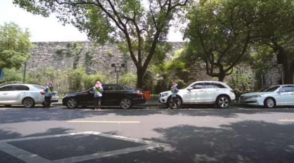 “倒倒倒,好——”,她所管辖的停车泊位有120个,每天像这样指引车主倒车,需要挥动4000次手臂,手臂酸了她就在闲暇时自己揉揉。
