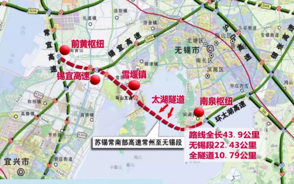 目前,太湖隧道建设正在全速推进。按照计划,苏锡常南部高速公路将在2021年建成通车。