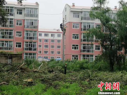 图为国网齐齐哈尔供电公司紧急调配物资更换受损电杆。(田睿摄)