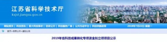 为贯彻落实高质量发展要求和省“十三五”科技创新规划,加快构建自主可控的现代产业体系、建设高水平创新型省份,日前,江苏省科技厅公示了2019年省科技成果转化专项资金拟立项项目名单,泰州有2个项目入围。