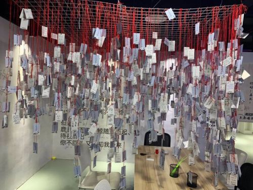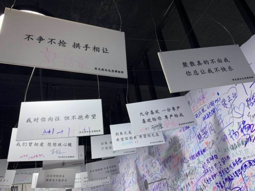 “不少参观者会在墙上写下感言。因为感言太多,我们已经换过好几面留言墙了。”