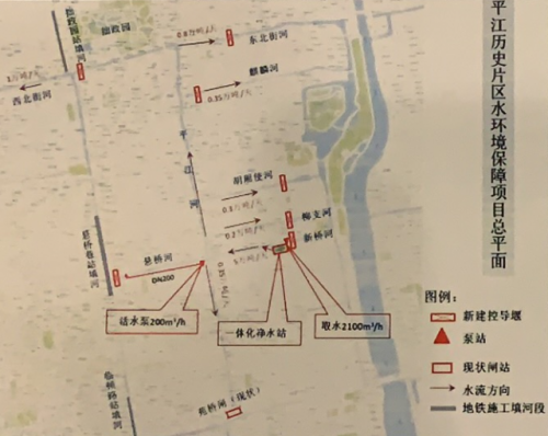 由于平江片区上游来水通道被切断,为维护平江区水环境,施工期间,有关方面将通过租赁一体化设备原位净水站,实现水系补偿。