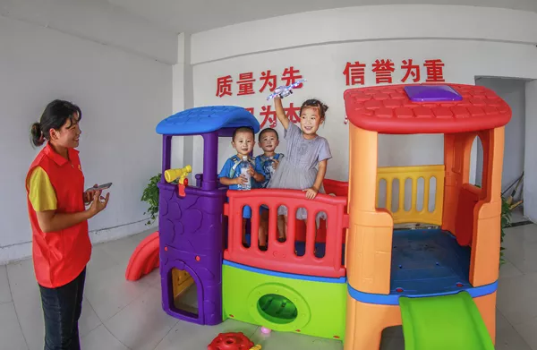 多年来,留守儿童的成长一直困扰着瓦庙村。去年以来,曹庙乡扎实开展招商引资工作,立足本村实际,招大引强,在瓦庙村创办了工业园区,让百姓告别了外出打工的历史,实现了家门口就业。为了让全村儿童暑期有个好去处,同时也为了解决工人的后顾之忧,让他们安心上班,创博纺织有限公司老板张玉松近日在企业二楼开辟400多平米的地方,建设儿童游乐园、阅览室和休息室,为孩子们提供温馨、舒适的玩乐、学习和生活环境。