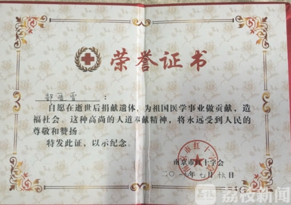 7月16日,郜爱雪老人在南京浦口医院静静地离开了这个世界。这位一辈子教书育人的好老师,弥留之际的唯一心愿,就是在死后将自己的遗体捐献给医学研究事业。