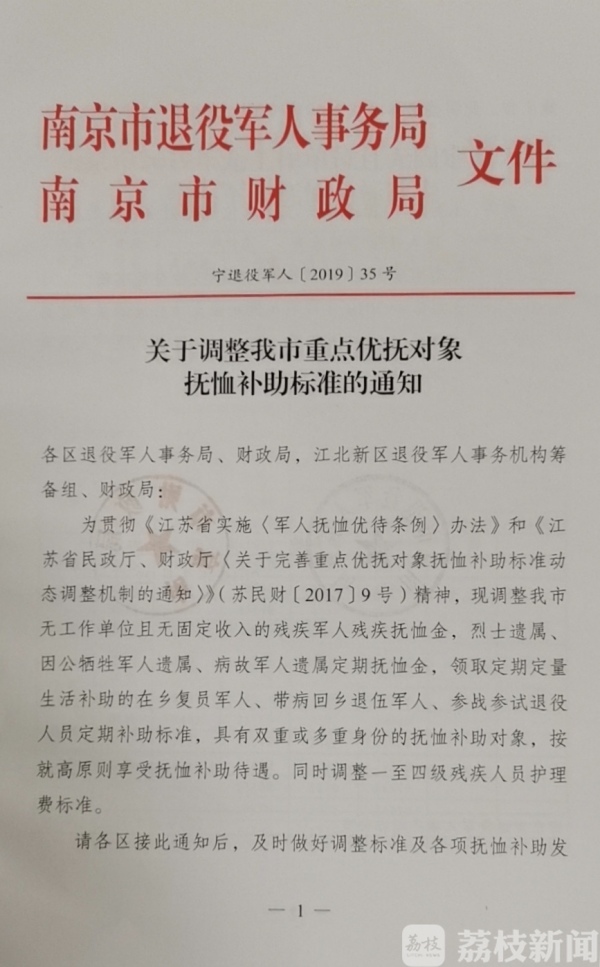 据南京市退役军人事务局统计:从今年7月1日起,新的补助标准将惠及南京市重点优抚对象9360人。