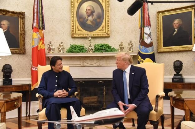 资料图:美国华盛顿当地时间2019年7月22日,巴基斯坦总理伊姆兰·汗与美国总统特朗普会晤(视觉中国)