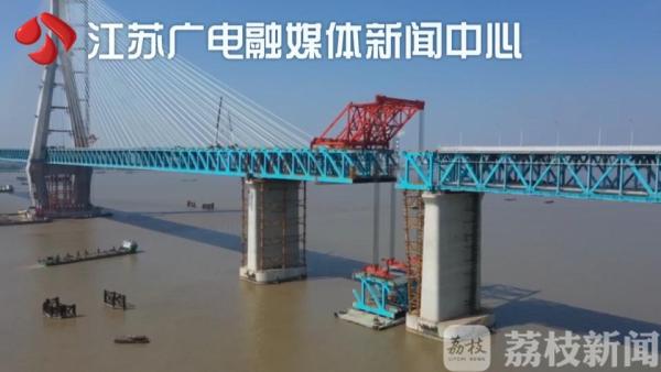 据了解,沪通长江大桥主桥全长2300米,共有164个标准节间的钢梁,其中南通侧81.5个。按施工计划,全桥力争于国庆前贯通。