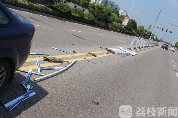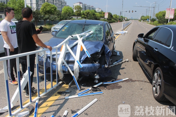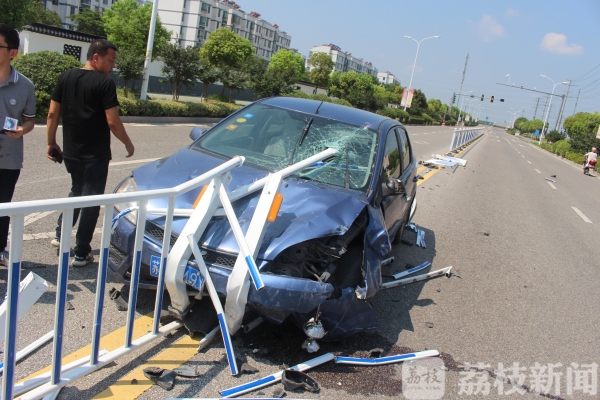昨天(7月29日)9时51分许,在江苏句容市郭庄镇空港教育园附近地段,发生一起轿车撞护栏单方交通事故。一男子开车分神,致车辆与道路中央护栏相撞受损,3根受损护栏插入车内,驾驶人险被戳中。