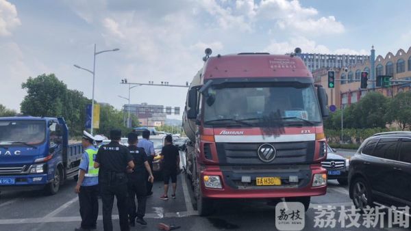 2019年7月28日14时10分许,南京交警八大队事故中队接到警情,在雨花台区安德门大街软件大道路口,一辆重型罐式货车发生爆胎,导致旁边经过的小型客车驾驶员和副驾驶乘客受伤,民警立即赶到现场进行处理。