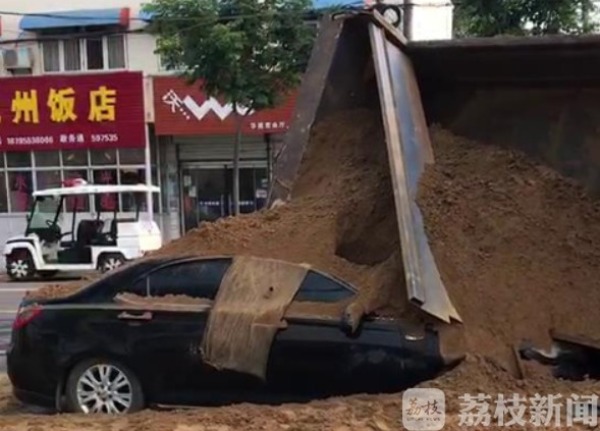 据了解,当日货车驾驶员张某从石梁河库区运送沙土到附近工地,由于气温较高,车内空调制冷效果不太理想,张某一会儿便汗流浃背。张某便用右手擦汗,因操作不当货车撞上了停靠在路边的一辆轿车,轿车被散落的沙土及货车尾部覆盖,损毁严重。所幸当时轿车内并无人员,没有造成人员伤亡。目前该起事故正在作进一步处理。