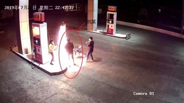 据云南麒麟警方消息,7月23日22时46分,云南曲靖市麒麟区东山镇某加油站内出现惊险一幕:一名加油站女员工正在为一摩托车加油,摩托车上下来的一名男子突然伸手摸到她的脸上进行调戏,她随即打开对方的手。然而,没有想到,对方竟然没有收敛,一面语言侮辱,接着又从裤包内掏出打火机笑着点燃了摩托车。火焰迅速将整个摩托车车身及加油枪笼罩,加油站女员工一面呼喊,一面去拿灭火器。周边群众看见后赶来,一同使用灭火器将正危险燃烧的大火扑灭。所幸没有造成人员伤亡和更大的后果。