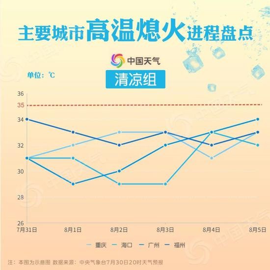 重庆、海口、广州、福州未来六天最高气温都在35℃以下,广州明天的最高气温甚至只有29℃,可以说是夏日里难得的清凉了。不过需要提醒的是,华南地区的小伙伴们在享受清凉的同时,也要做好防台风的准备。