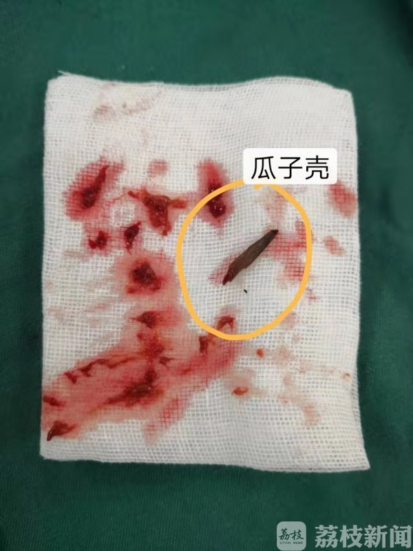 为什么皮肤没有破损,瓜子壳能够进入皮下?郭俊斌解释说:“应该是小患者误食瓜子后,瓜子壳顺着消化系统排出,在直肠部位刺破直肠进入皮下,直肠自行修复好了,皮肤也没有破损,而瓜子壳留在皮下。建议家长不要随便给孩子吃类似的坚果,如果喂食最好能够加工成没有棱角的,以免发生意外。”