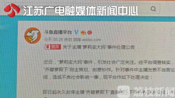 今天凌晨,斗鱼在官方微博上发布公告称,"萝莉变大妈"事件为主播策划刻意炒作,永久封停其直播间。今天上午10点,记者联系上斗鱼公关负责人潘飞虎,对方称在开车半小时后联系,但此后电话、微信等途径都不再回复。主播年龄究竟多大,此前主播获利情况如何等问题依然没有明确。