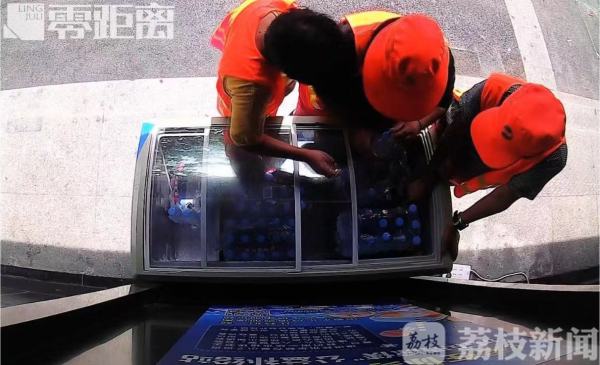 今天,南京丹凤街的“公益补给站”依然吸引了不少户外工作者取用冷饮。早上10点多,几位环卫工刚好路过,他们一起停下清扫车,从爱心冰柜中取水解暑。