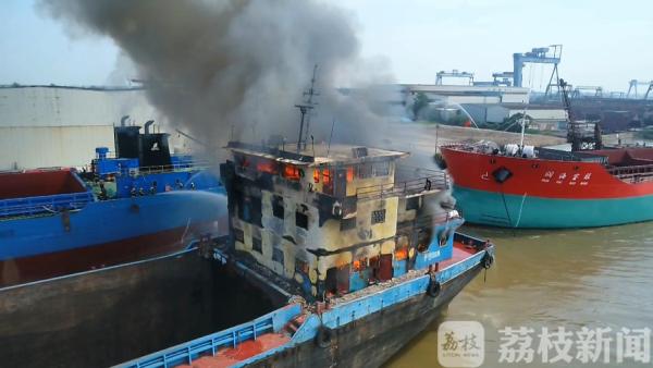 据了解,当天该船舶停在这里进行修整,可能是线路故障引发火灾。事发时着火货船上没有船员,船厂工人发现冒烟后报了警。