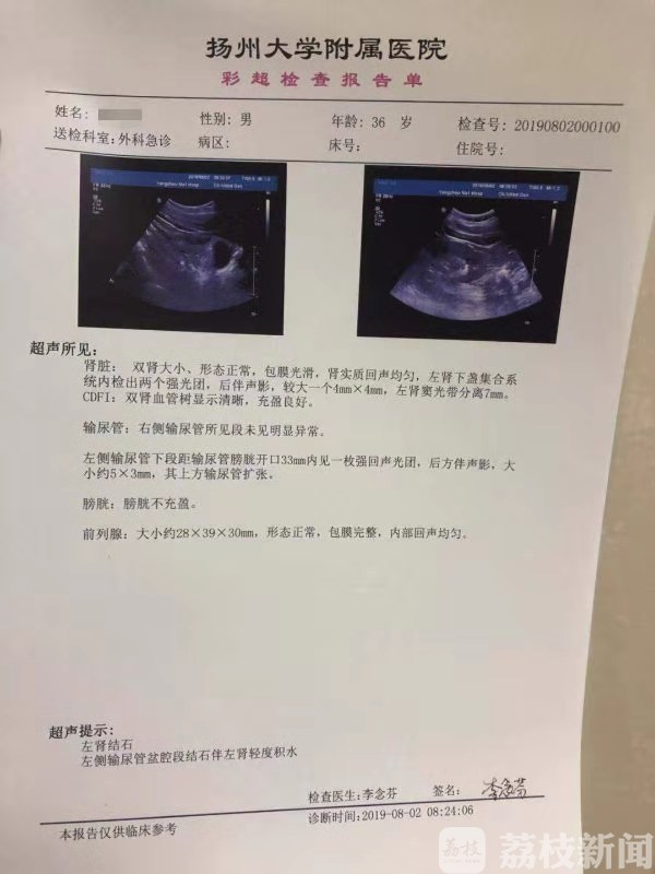 检查站值班负责人梁明辉获悉后,将谢某某的车子停在检查站。同时,迅速启动困难群众紧急救助预案,并派出特勤队员戴勇驾车护送谢某某快速赶往扬州市第一人民医院,紧急救治。经医院确诊,谢某某为急性肾结石发作。