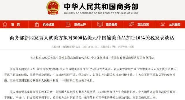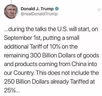 就在第十二轮中美经贸高级别磋商结束的第二天,美国总统特朗普便公开表示,拟于9月1日对3000亿美元来自中国的商品加征10%的关税。