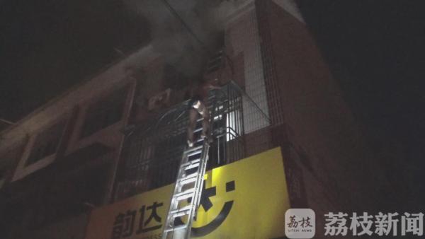 昨天(8月2日)凌晨,扬州市江都商贸城附近的一栋民宅发生火灾,室内充斥着浓烟烈焰,而户主和年幼的孩子被困在二楼的防盗窗顶部,稍有不慎就会坠楼。