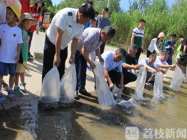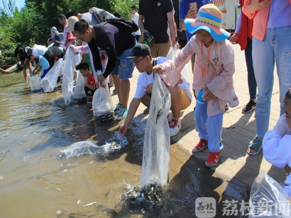 8月3日上午10点,“助力拯救长江江豚”社会参与增殖放流公益活动在南京长江新济州国家湿地公园启动。该项目旨在集社会力量助力修复长江生物多样性、改善水域生态环境,还江豚一个食物充足的长江。百余名爱心市民和小朋友代表参加了放流活动。