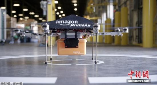 资料图:亚马逊公司推出的迷你无人机送货服务。