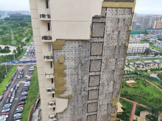 “早上5点半左右,当时雨下得很大,我们还是听到了楼下传来的轰隆声音,后来从小区业主群里就知道是3号楼的外墙保温层脱落,有人赶紧到楼下查看自己的车辆,发现有多辆汽车和摩托车、电动自行车被砸。”居民张女士说,她就住在“肇事”的3号楼,“这是去年夏天刚刚入住的小区,仅仅一年外墙保温层就脱落,我们都很担心楼房质量。”