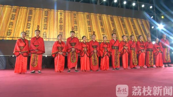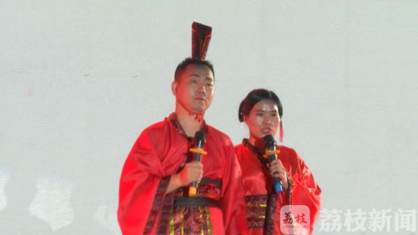 昨天(8月4号)晚上7点,在悠扬古韵曲声中,新人们身着大红汉袍,高冠博带、妆容精致,步履优雅地缓缓走来。华美的汉服和新人们脸上幸福的微笑互相映衬,一幅幅温馨画面动容全场。在司礼官的口令下,新人们遵循古礼,依次进行着简而不繁、寓意深刻的汉式礼仪。王青、梁健告诉记者,他们恋爱一年多了,也是偶然的一次机会看到了集体婚礼的活动宣传,就立刻前去报名了。