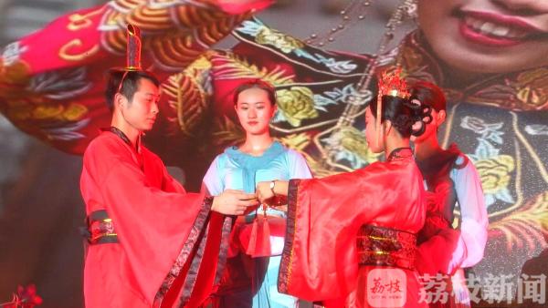 沃盥礼、合卺礼、执手礼,在传统七夕节即将到来之际,第二届句容市集体婚礼以一场别样浪漫的汉式婚礼风燃爆全城。现场7对新人依照传统婚礼仪式,为各自许下中国式爱情承诺,原汁原味地再现千年古老的婚俗仪式,浓郁的民族风让每位市民为之陶醉。