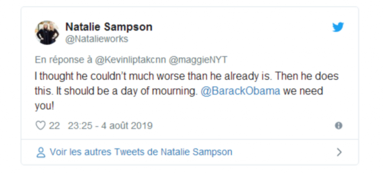 “我本以为他已经糟糕透顶了。居然还做出这种事。这应该是哀悼日。奥巴马,我们需要你!”