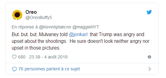 “但是......但是......但是......,马尔瓦尼明明说特朗普对枪击事件感到愤怒和不满。这些照片中真一点也看不出生气和沮丧。”